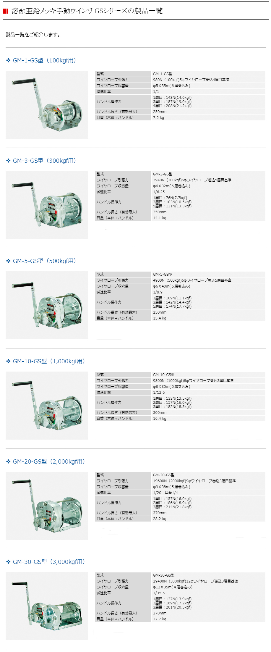 MAXPULL手動絞盤GM-10-GS型(1,000kgf用)