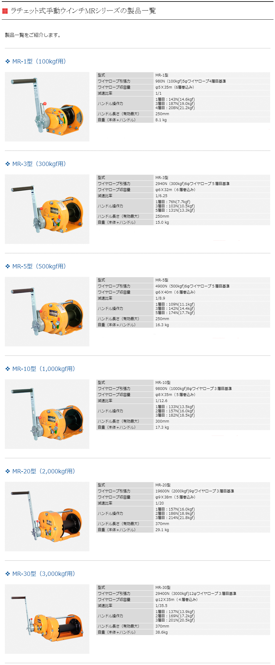 MAXPULL手動絞盤MR-1型(100kgf用)