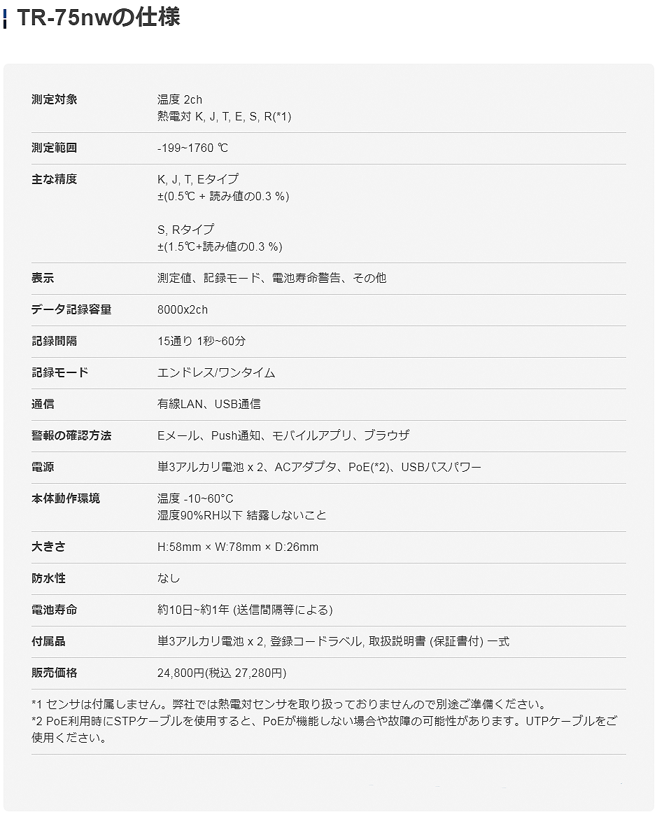 TANDD溫濕度數(shù)據(jù)記錄器TR-75nw