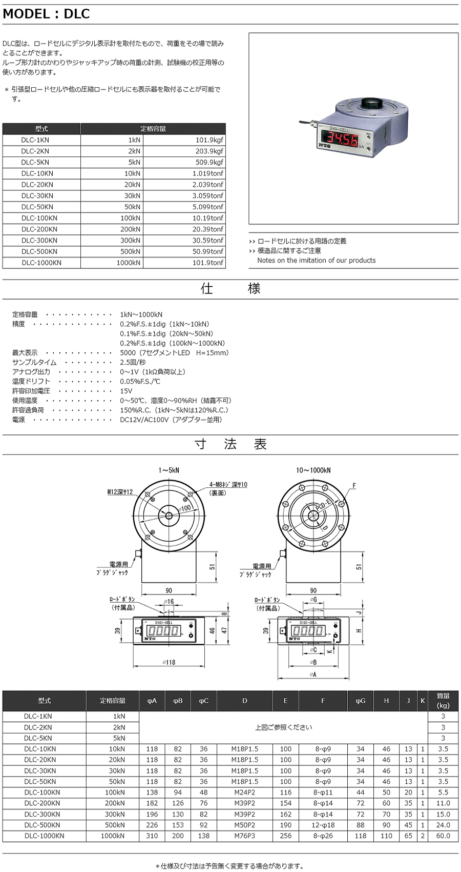 特殊測器荷重傳感器DLC-50KN