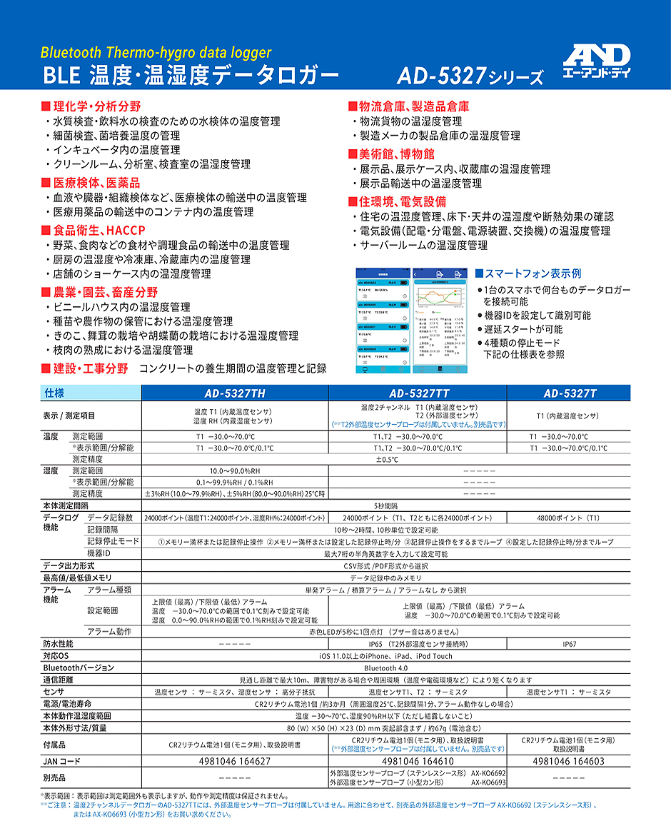 AND(A&D)溫濕度數(shù)據(jù)記錄器AD-5327TH