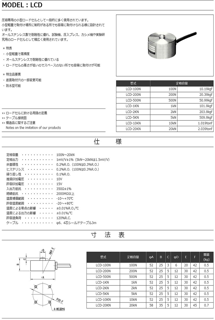 特殊測(cè)器荷重傳感器LCD-200N