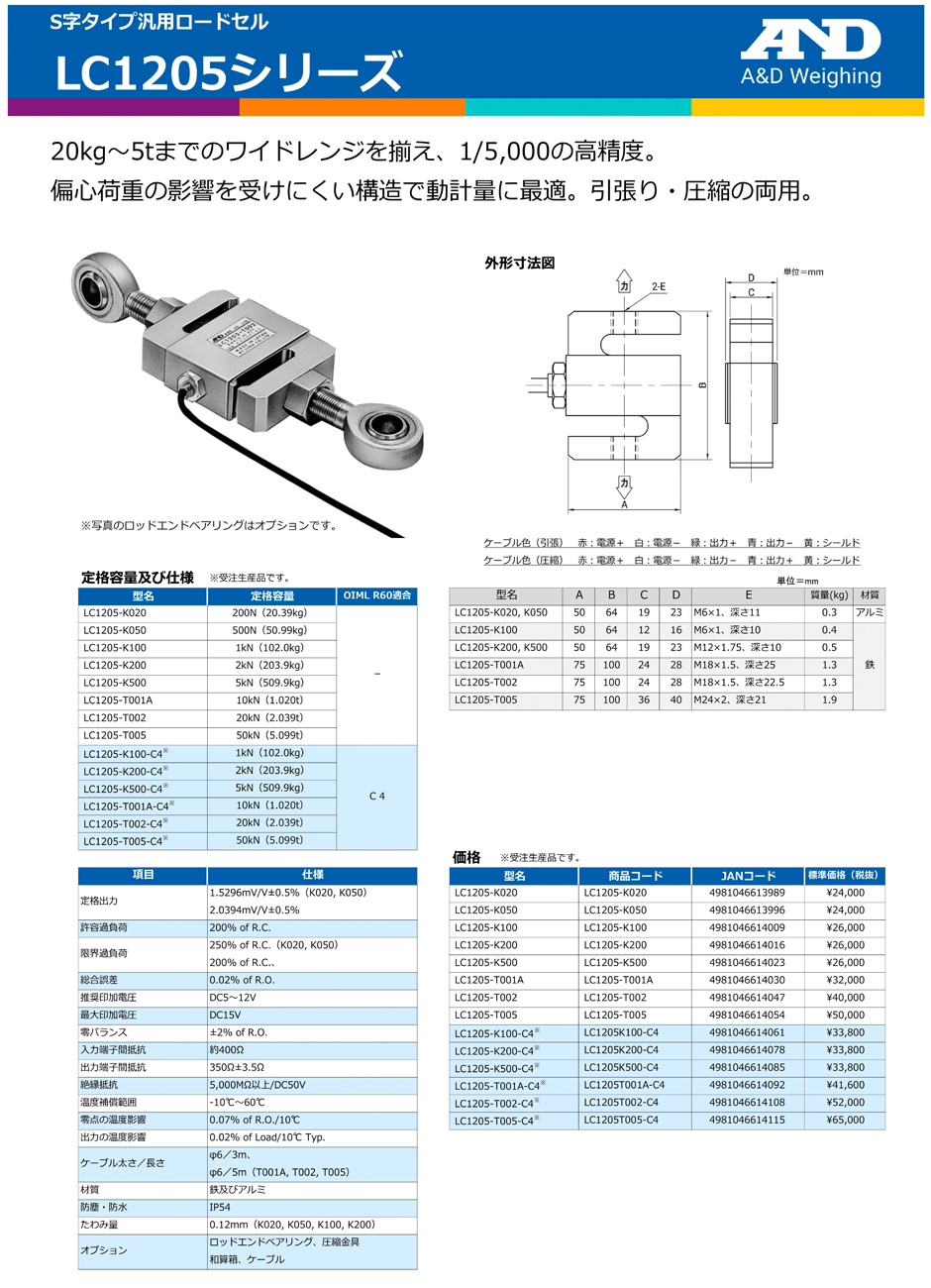 AND(A&D)負(fù)載傳感器LC1205-T002-C4