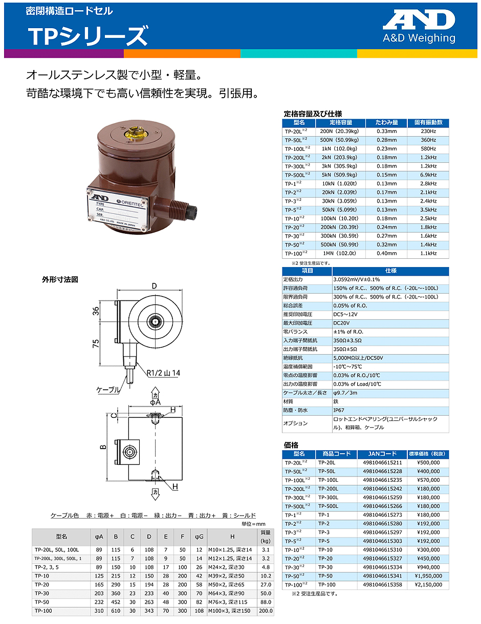 AND(A&D)負(fù)載傳感器TP-300L