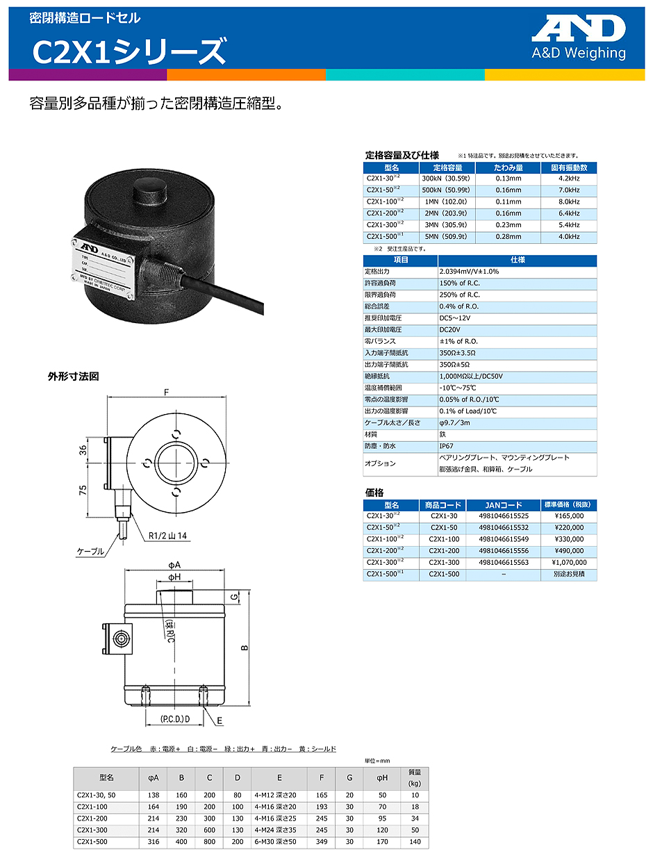 AND(A&D)負載傳感器C2X1-500