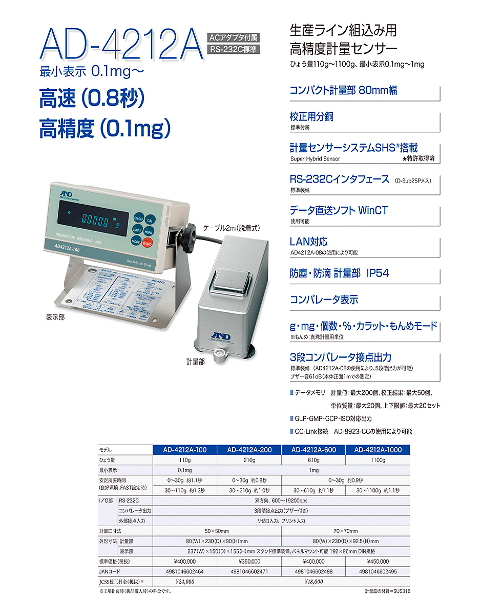 AND(A&D)高精度計(jì)量傳感器AD-4212A-200