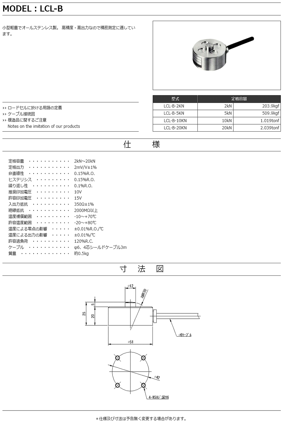 特殊測器荷重傳感器LCL-B-2KN
