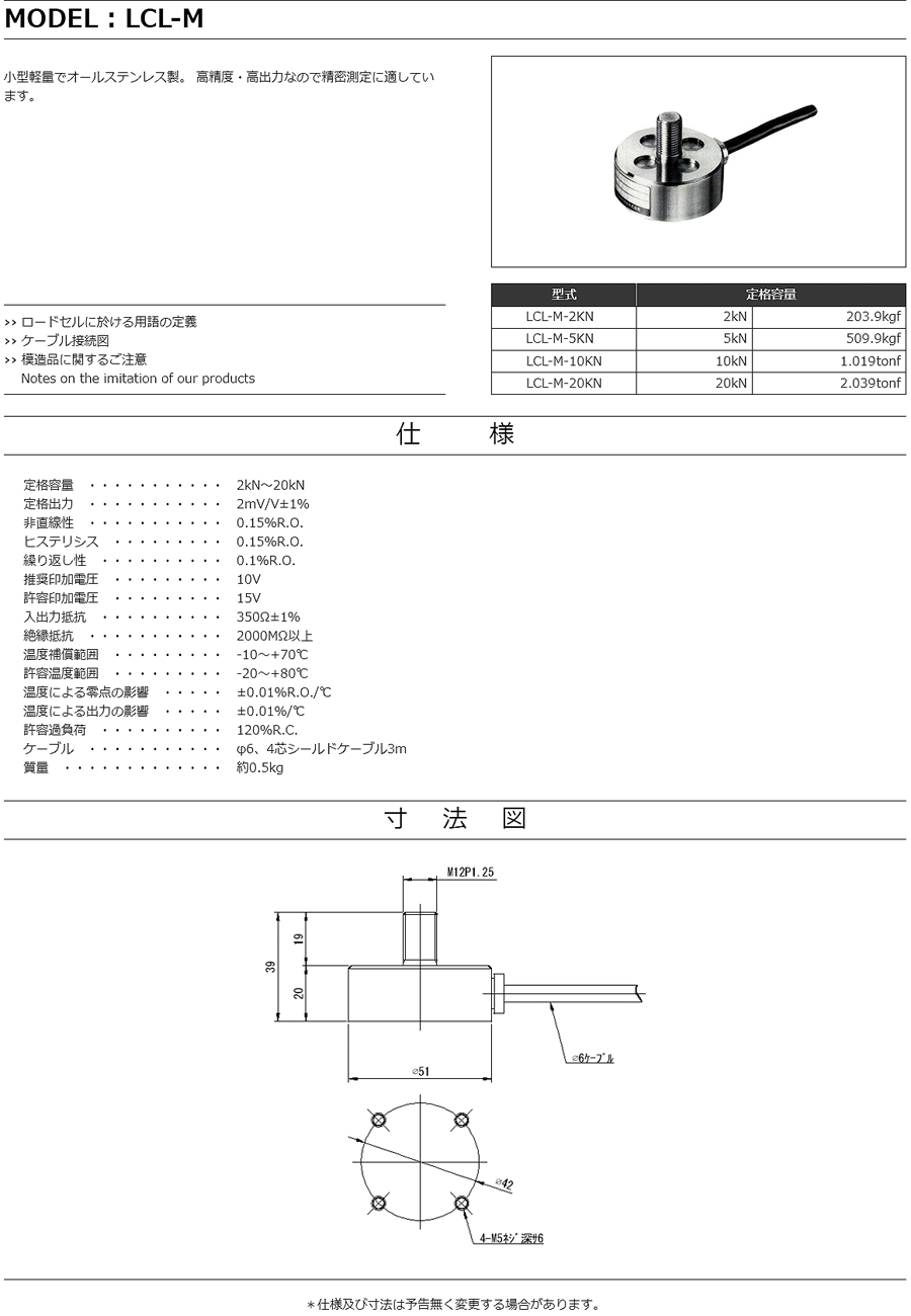 特殊測(cè)器荷重傳感器LCL-M-20KN