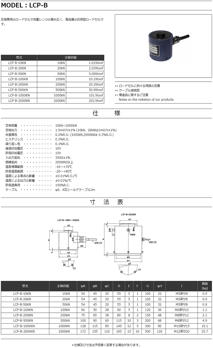 特殊測器荷重傳感器LCP-B-1000KN