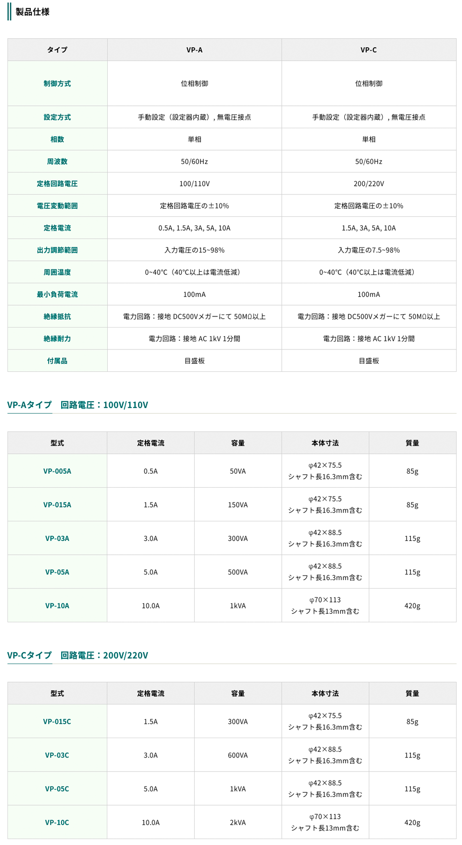 東京理工舍電力調(diào)整器VP-10A