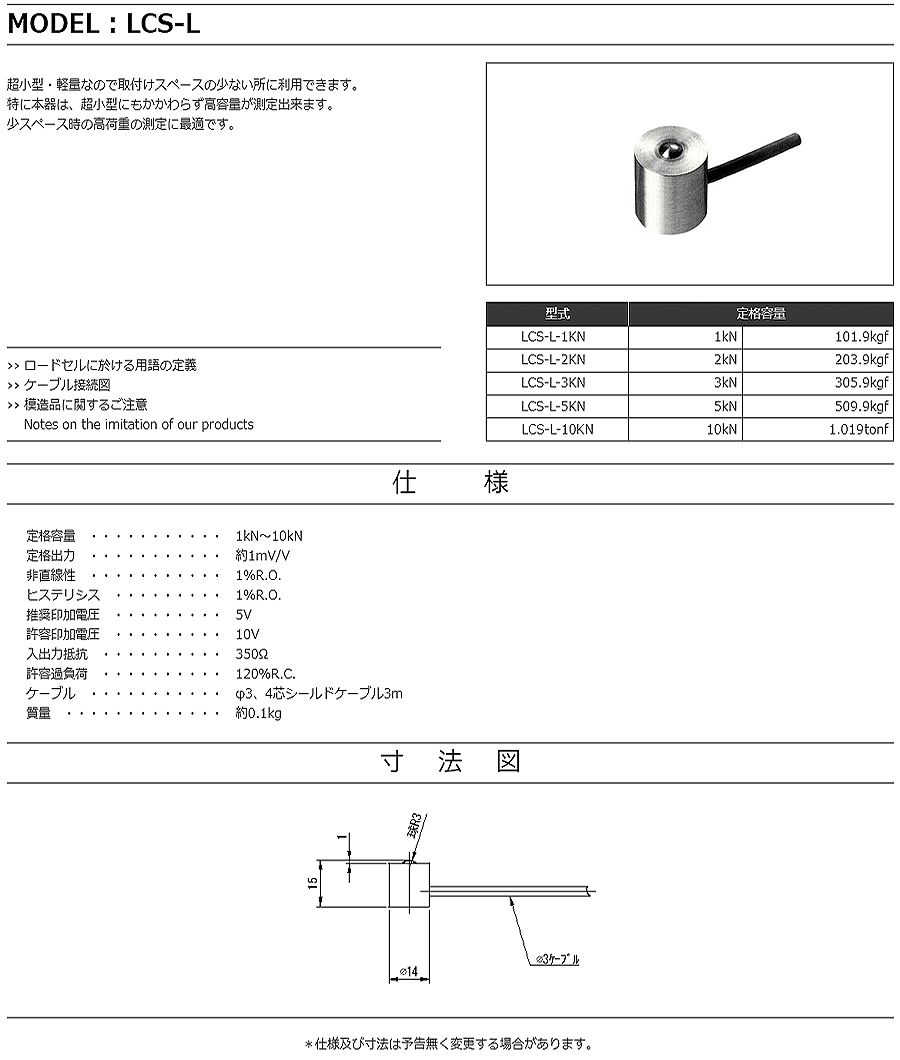 特殊測器荷重傳感器LCS-L-10KN