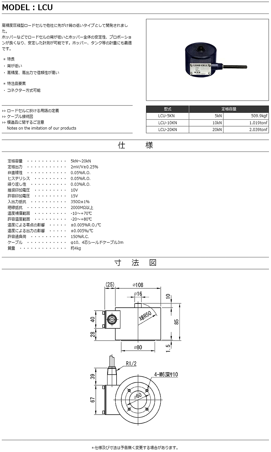 特殊測器荷重傳感器LCU-20KN