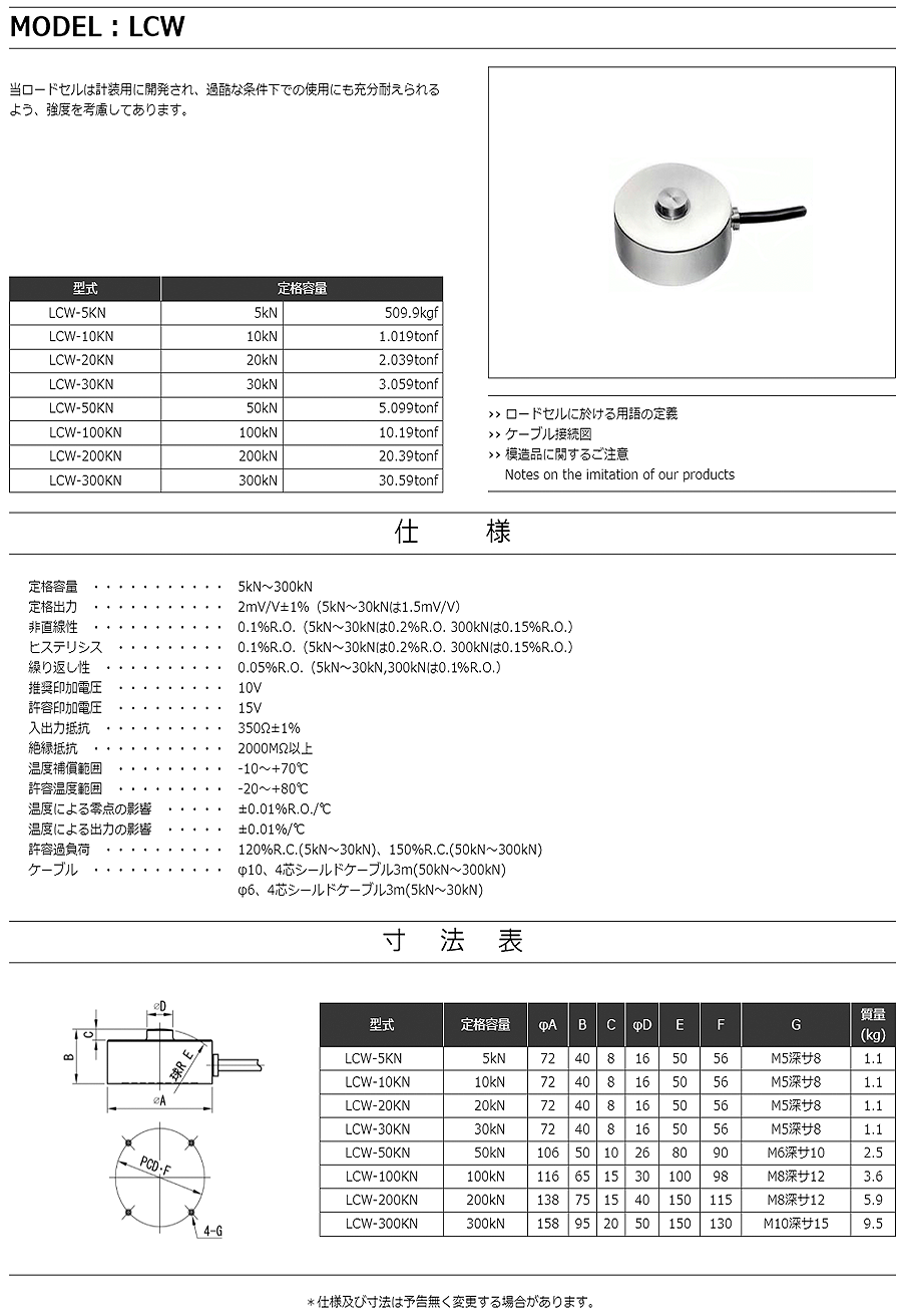 特殊測器荷重傳感器LCW-5KN